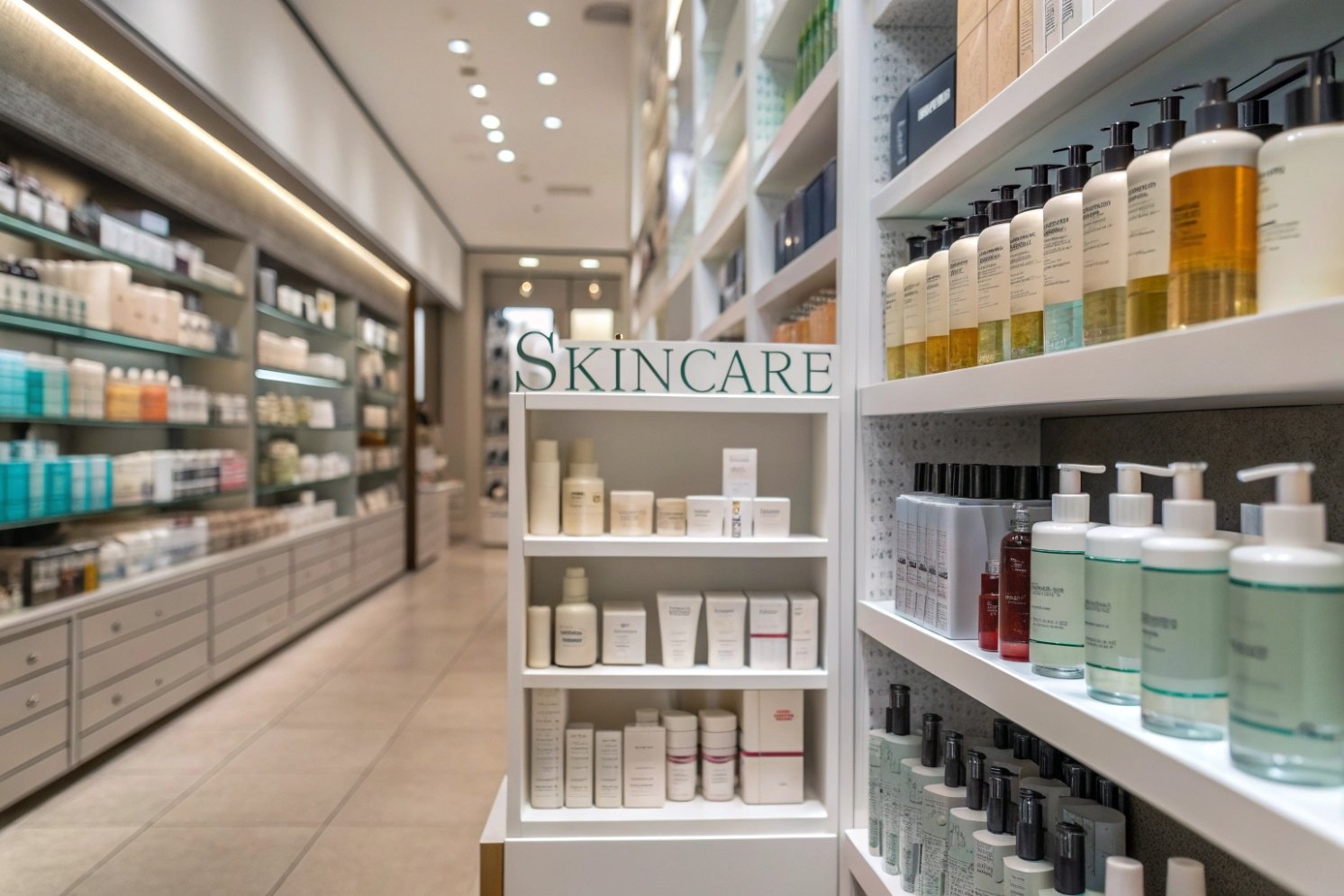 Skincare aisle shelves