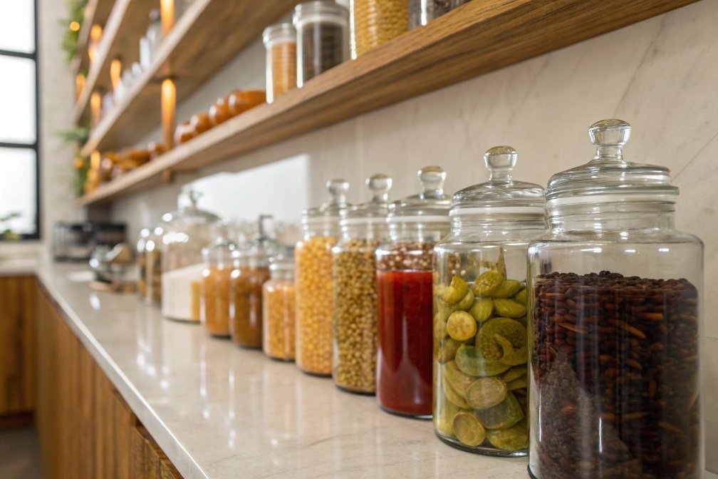 Storage containers must protect food but also enable easy monitoring. Transparent, odor-neutral glass jars give key advantages here.